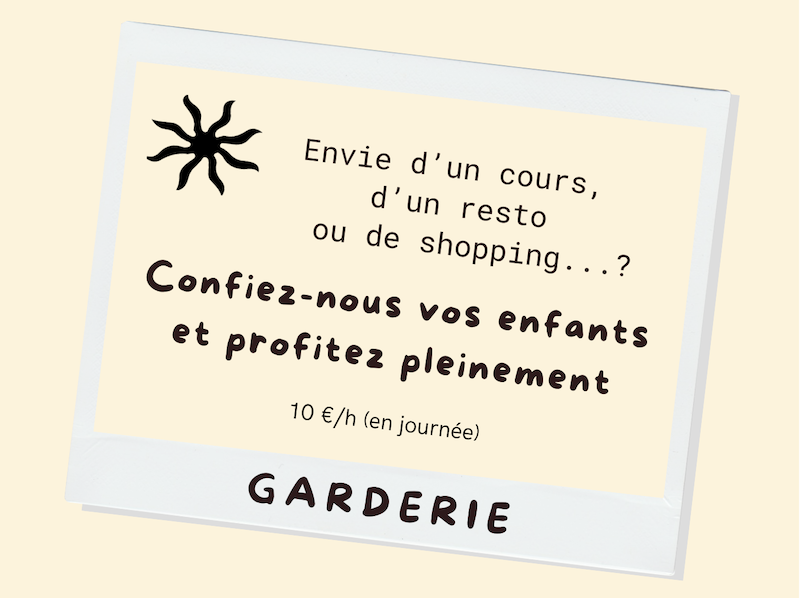 Garderie et animations variées tous les jours de juillet-août et en avant-saison les mercredis et week-ends Par 1/2 journée : 10h-13h et/ou 14h-17h + option garderie midi